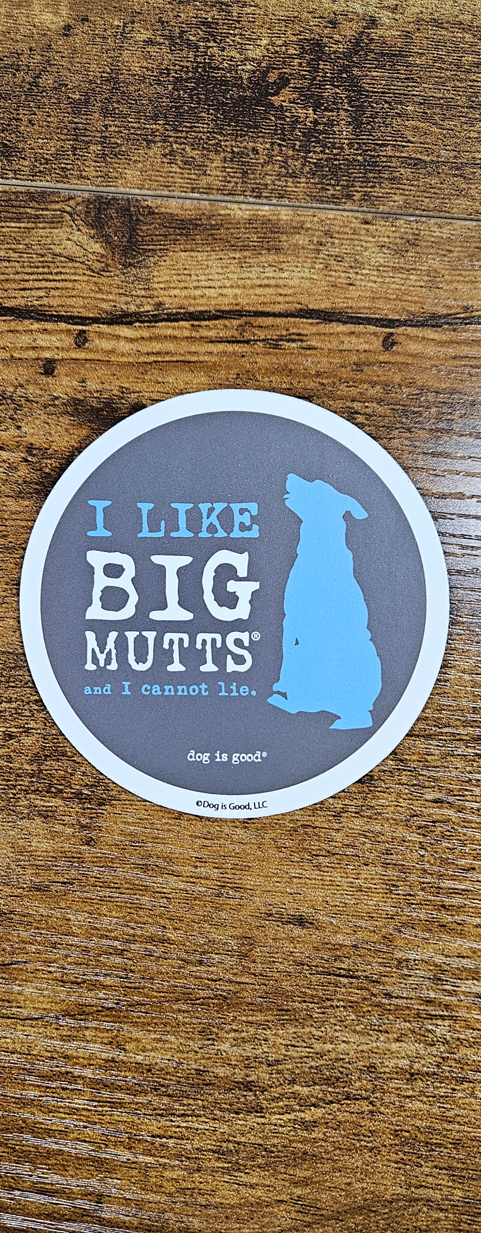 Add some fun and games to your day with our Sticker from Dog Is Good! Made in the USA with high-quality UV-protected vinyl, this 4-inch sticker is perfect for boosting the mood on your computer, drink cup, or car window. And with the humorous saying "I like Big Mutts and I cannot lie," you'll be sure to get a laugh wherever you go!